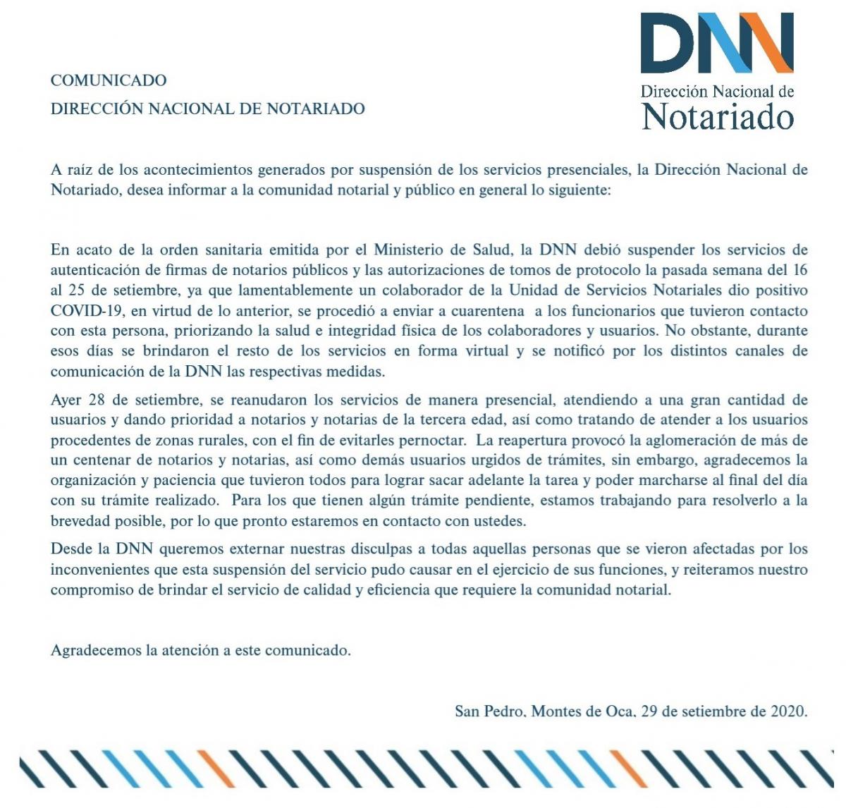 Comunicado de la Dirección Nacional de Notariado